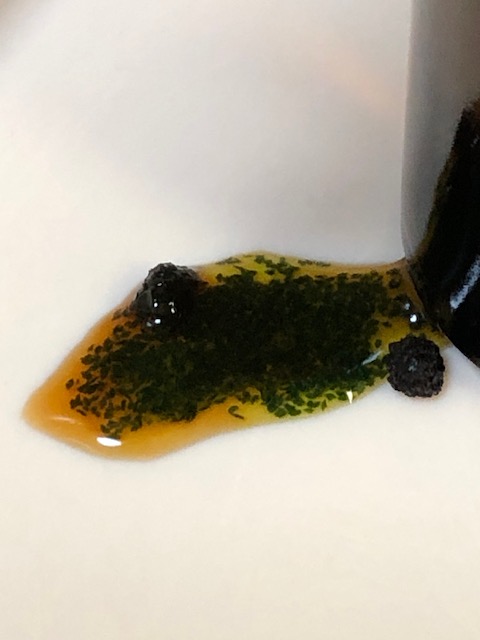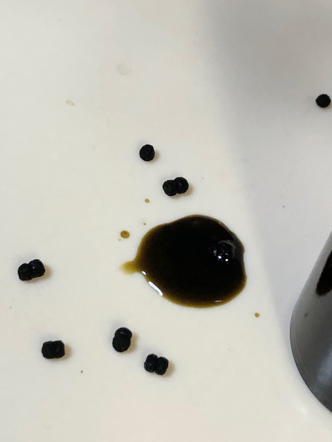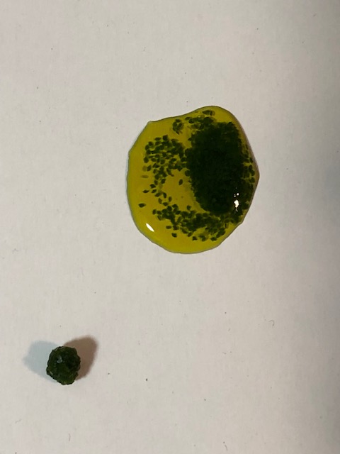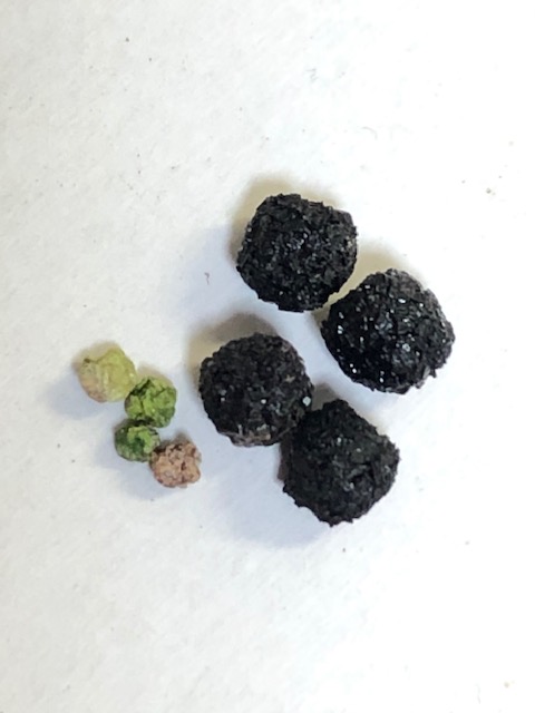 これは4匹分。黒いフンは直径3mm、カラフルなフンは直径1mmほど。