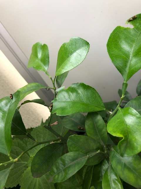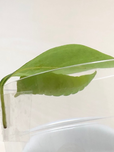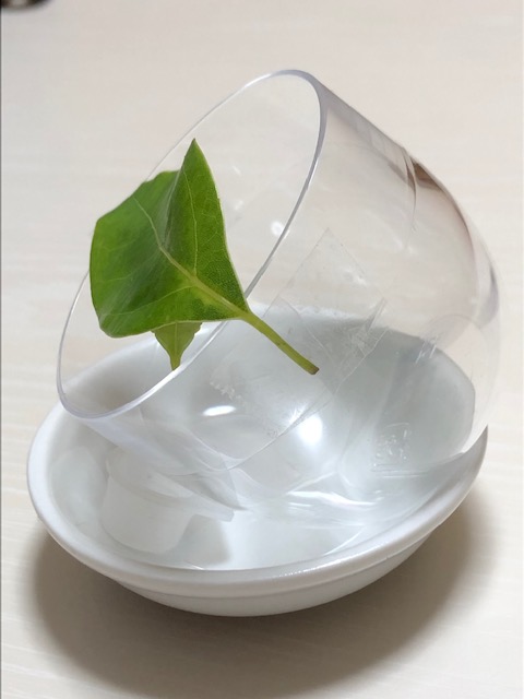 卵の殻を食べた後は、近くに置いてある柑橘の葉っぱに自ら移動しました。