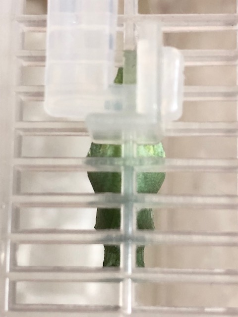 近くに枝があった蛹は茶色、なかった蛹は緑色になりました。