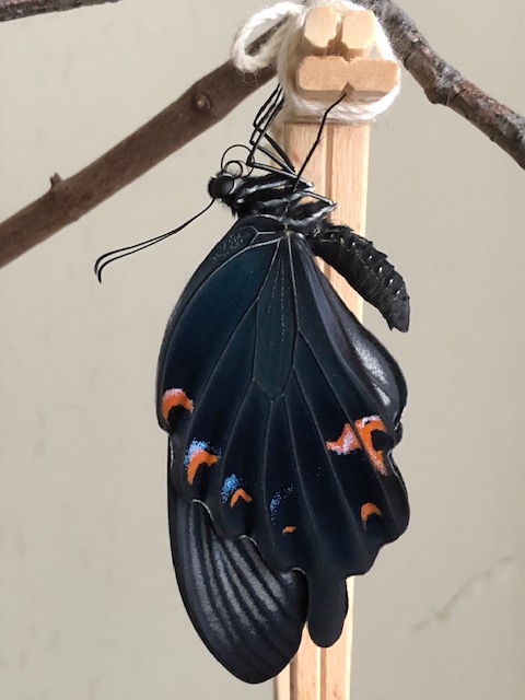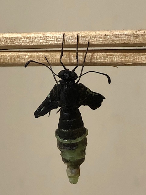 アゲハ飼育日誌2121 黒地に青 短日処理始まる 寄生バチ?