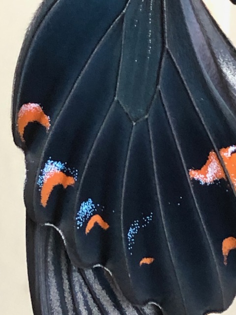 クロアゲハの翅にはほんのり青い鱗粉が入っています。