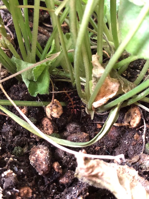 屋外(ニオイスミレの鉢植えと飼育ケース)で飼育中。