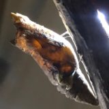 翌日、きれいな蛹に脱皮。こうなったら、剥がして蛹ポケットに移動は忍びなく、このまま越冬ということになりました。