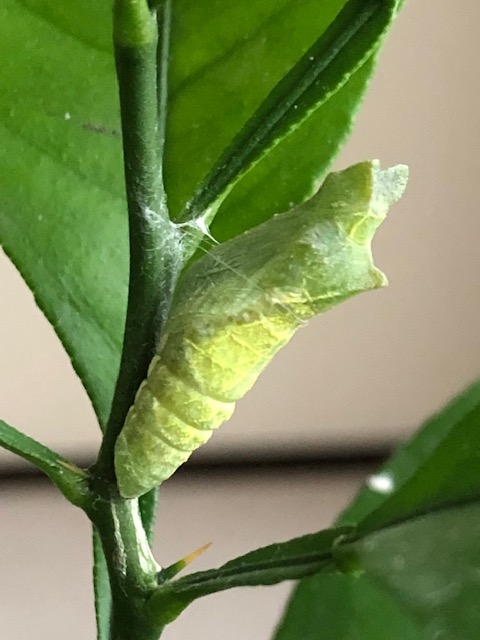 モンキアゲハの蛹には中央にくっきりした白いラインがある、なんて知りませんでした。