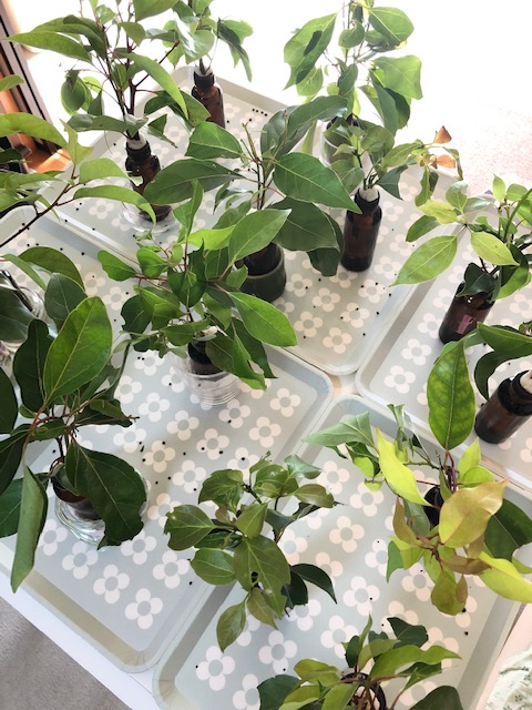 アオスジアゲハ約20匹。先週初めに大量入荷した幼虫たち。( 今年の日誌33稿 )