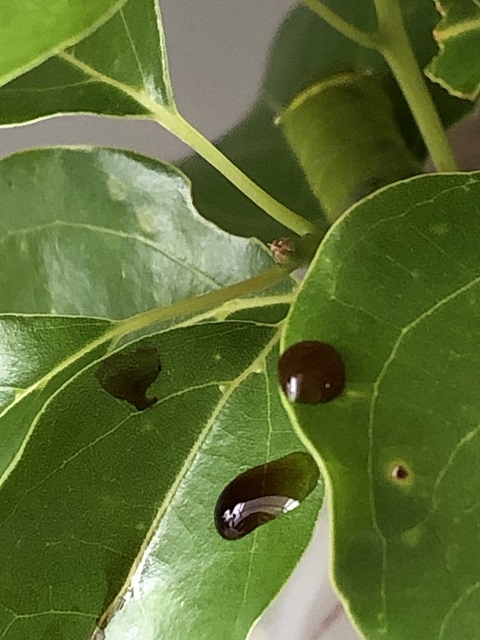 これを見ると、幼虫が葉っぱを食べる時に落ちる樹液ですね。