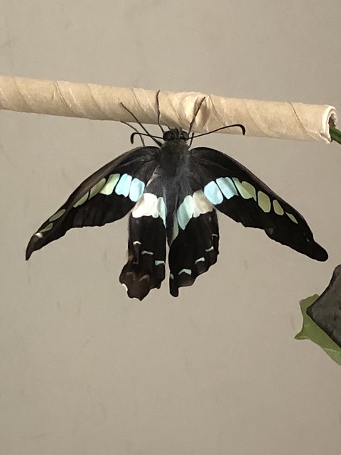 我が家で初めて、うじ虫摘出後の蛹から蝶が羽化しました。