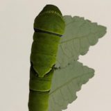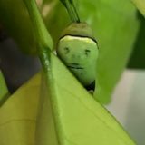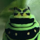 ミカンの皮を食べるクロアゲハの終齢幼虫。