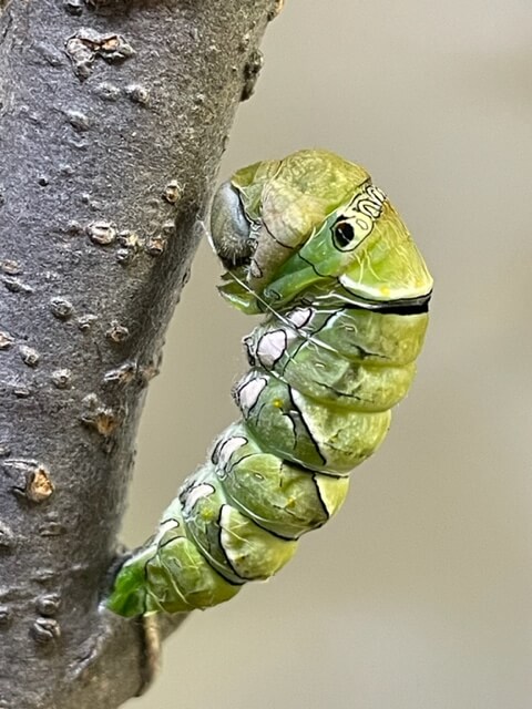 友人の鞄に付いてきたナミアゲハの幼虫。