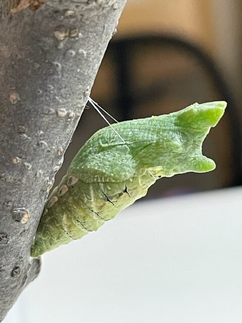 かみさんが「ここで蛹になるのかも」と言うと、友人は「じゃあ、この鞄持ってってくれ」と言っていたとか。