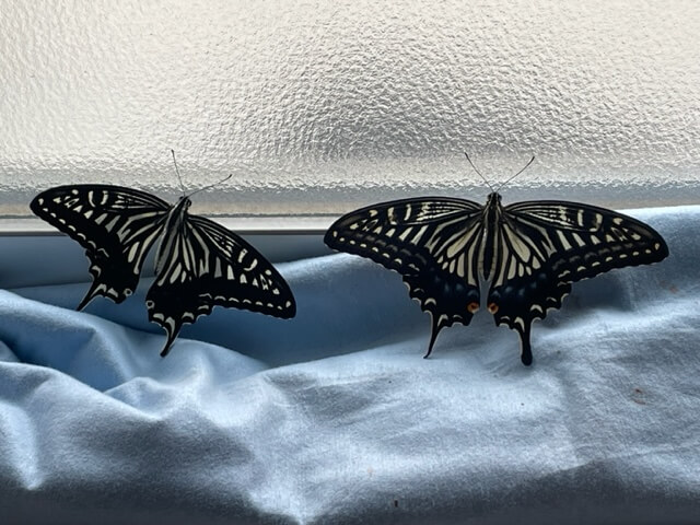 ナミアゲハのオスとメスが続けて羽化。