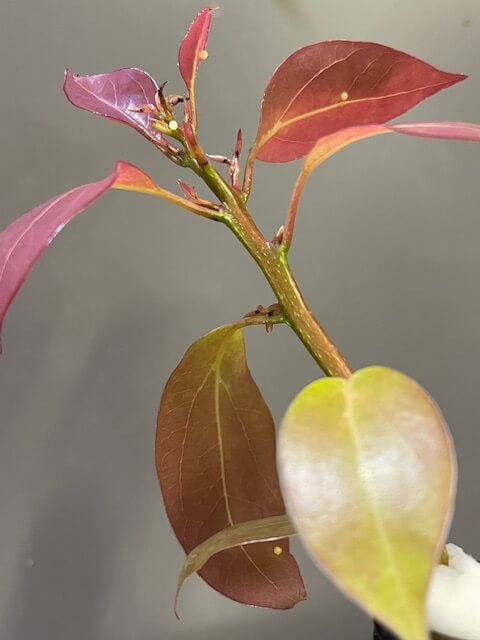 ピンク色のクスノキに卵4つ。