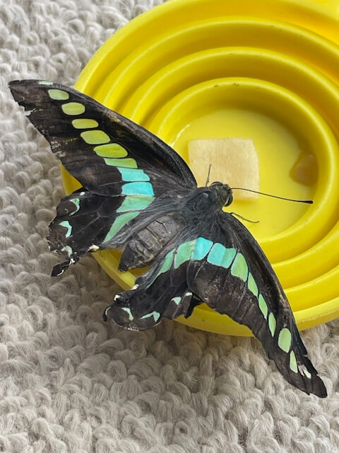 蝶を飼うのは慈悲の心。ぼろぼろな蝶も遠くばかり見ている?