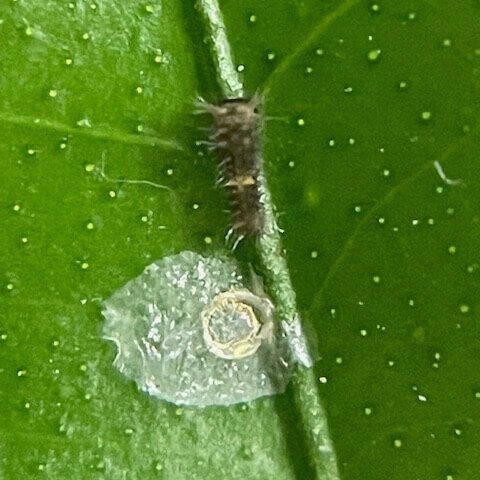 片栗粉で葉っぱに貼り付けた卵が次々に孵化。