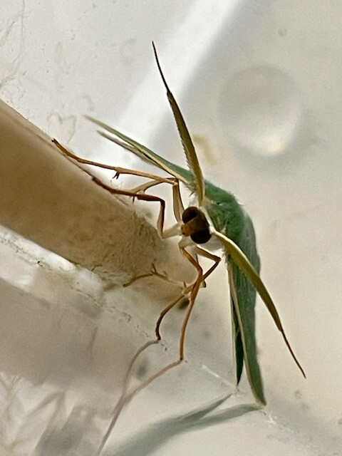 翅を閉じているクスアオシャクは初めて見ました。おそらく、羽化直後だけでしょう。