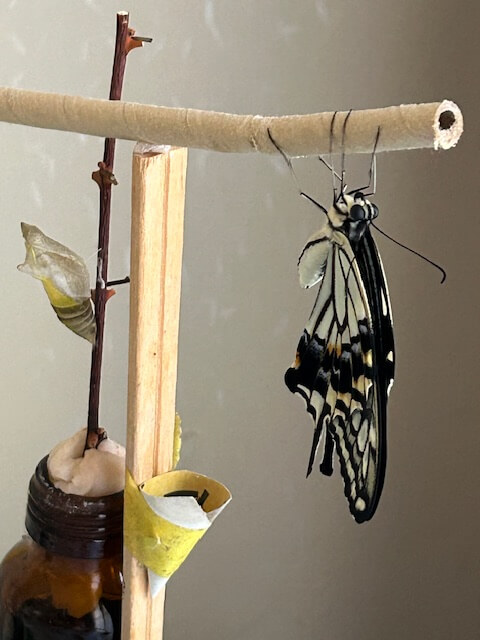 えっちら、おっちら。いつものアオスジアゲハの羽化。(笑)