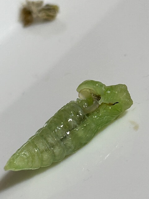 これは大丈夫でしたが、蛹便をしっかり排泄できないと、お腹は膨らんだままで、翅は十分に開きません。