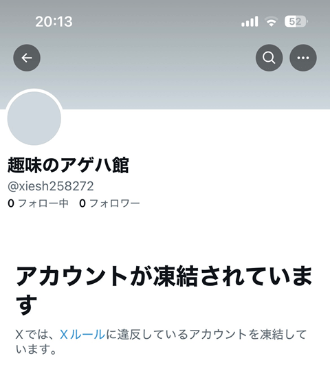 趣味のアゲハ館のXにこんな通知が届きました。