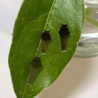 終齢になっても同居 アオスジ3齢糞処理 ビン好きアオスジ ナミアゲハ5cm終齢 アオスジマンション最初の羽化