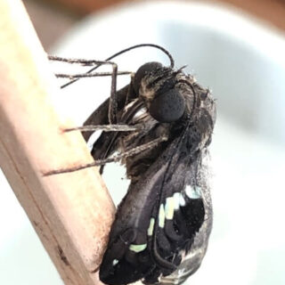 ■クロアゲハの寄生は今季初■体液が染み出た蛹 人力で羽化■キアゲハの休眠決定時期は3齢?■ハンディ顕微鏡を買ってはみたけれど