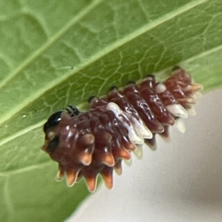 2023年 アゲハ飼育日誌2318 ジャコいもの習性いろいろ発見 かじれないクロいも ■ジャコウアゲハ成長記続編~幼虫のおもしろい習性発見■脱皮不全で葉っぱをかじれないクロアゲハの幼虫 2023.07.28 2023年飼育日誌